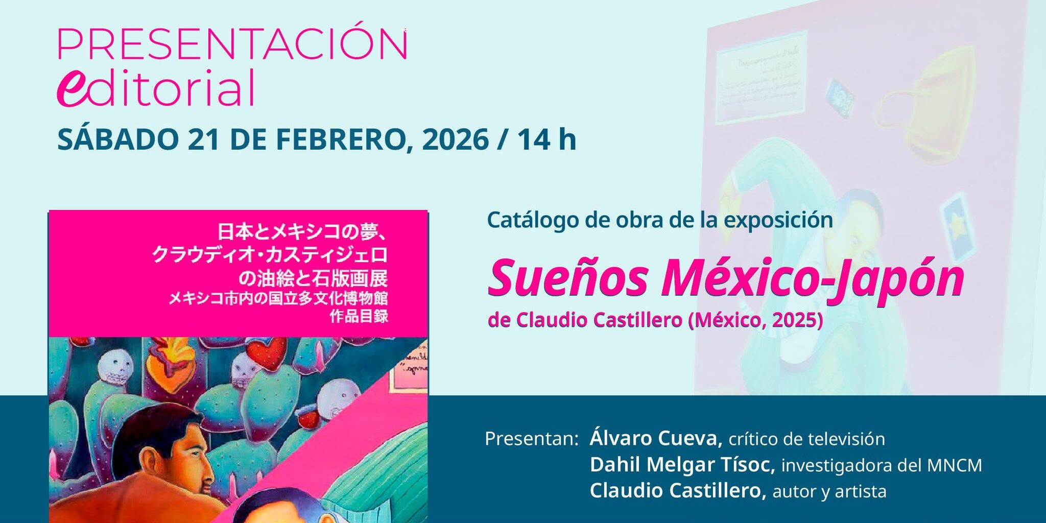 Presentación editorial del catálogo de la exposición Sueños México-Japón: óleos y litografías de Claudio Castillero, en el Museo Nacional de las Culturas del Mundo.